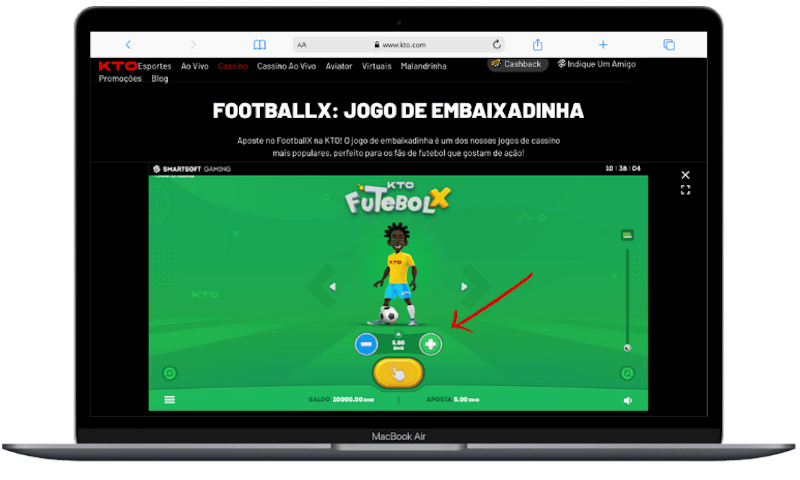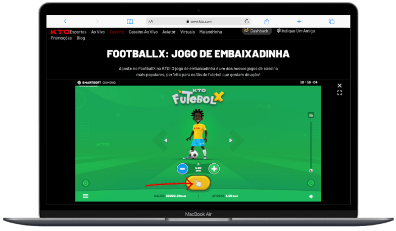 A casa de apostas KTO tem um site moderno, com diversas promoções e jogos populares. Para quem gosta de apostar em jogos Crash como o FootballX, a KTO é super recomendada! A casa não oferece bônus, porém na aba de promoções da casa você encontra diversas promoções para jogos na mesma linha do jogo da embaixadinha.