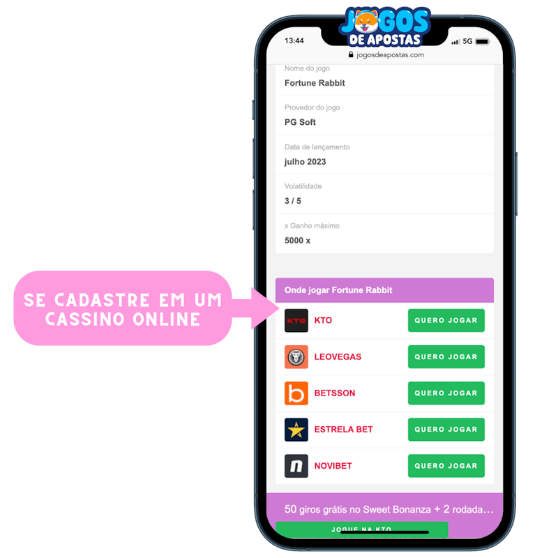 Veja no início dessa página quais são os melhores sites de cassino para apostar em Fortune Rabbit e se cadastre para poder jogar o jogo do coelho.