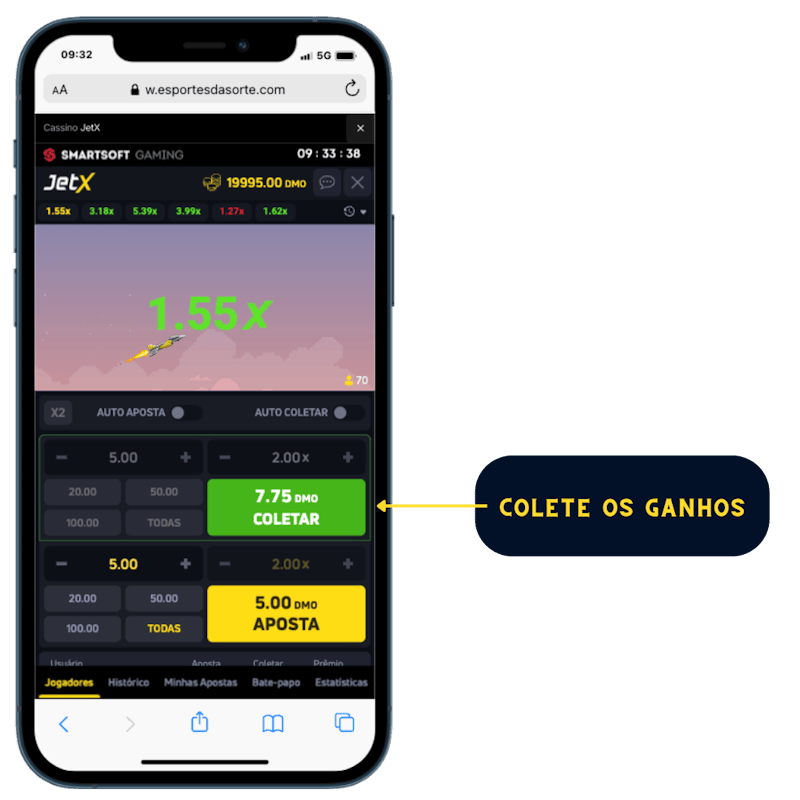 O jato pode ter um crash a qualquer momento, então você pode ter a sorte de ver suas apostas se multiplicando em 2x, 3x ou mais. Nas partidas em que o jato explode imediatamente após a partida começar, todos os jogadores perdem suas apostas. Veja abaixo um passo a passo com imagens mostrando como apostar:
