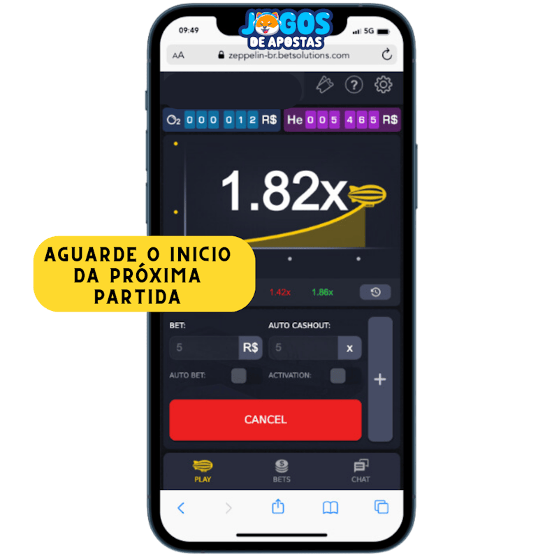 Depois de colocar a aposta, aguarde o início da próxima rodada para poder jogar. Enquanto o botão estiver vermelho, você ainda pode desistir da aposta, basta apertar o botão antes dele ficar amarelo. Quando ele mudar de cor, significa que a rodada começou e o Zeppelin vai começar a voar no gráfico.